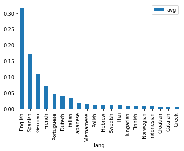 - Распределение языков в этих 359 учетных записях показано на следующем графике.