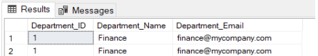 INSERT INTO HR_data.dbo.Departments VALUES (1, 'Finance', '[email protected]');