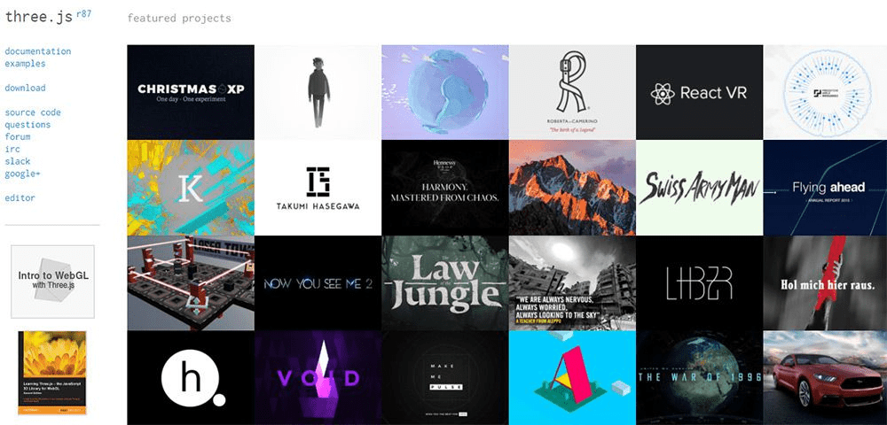 3D-библиотекой Javascript с множеством отличных примеров, включая открытый исходный код, который вы можете копировать, вставлять и поиграйте с открытыми разветвленными приложениями, чтобы изучить их и использовать. Посетите threejs.org, где можно найти большинство из этих примеров.