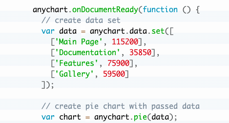AnyChart предлагает множество вариантов визуализации данных от круговых и кольцевых диаграмм до графиков. В этом пошаговом руководстве мы будем использовать шаблон кольцевой диаграммы, который можно найти здесь.